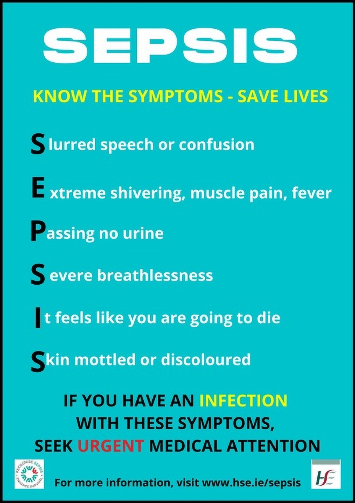 Due to COVID-19, this year’s World Sepsis Day will be a little different. Sligo University Hospital will hold internal education sessions for staff to highlight further the importance of prompt recognition of the signs of sepsis which will assist with immediate medical action and better patient outcomes.